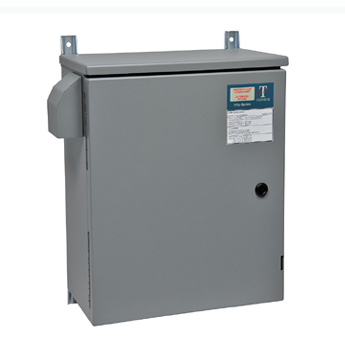 VRX Single Phase 230 V, 50/60 Hz : VRX single-phase units are available in following sizes: 3, 5, 7.5, 10, 15 and 20 kVA and are rated for 230 V at 50/60Hz. With an ambient operating temperature range of -20 to 50 °C, over- and under-voltage cut off is available as an option. The control PCB assembly is connectorized for easy replacement. Wall mounting is standard but pad or pole mounting is available as an option.